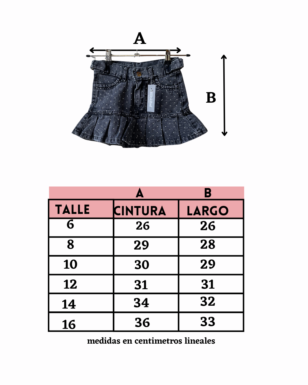 Confeccionada pensando en la comodidad y el estilo, es la opción perfecta para quienes buscan una pollera versátil y con personalidad. No olvides revisar las medidas para elegir el talle ideal y que tu hija luzca espectacular.