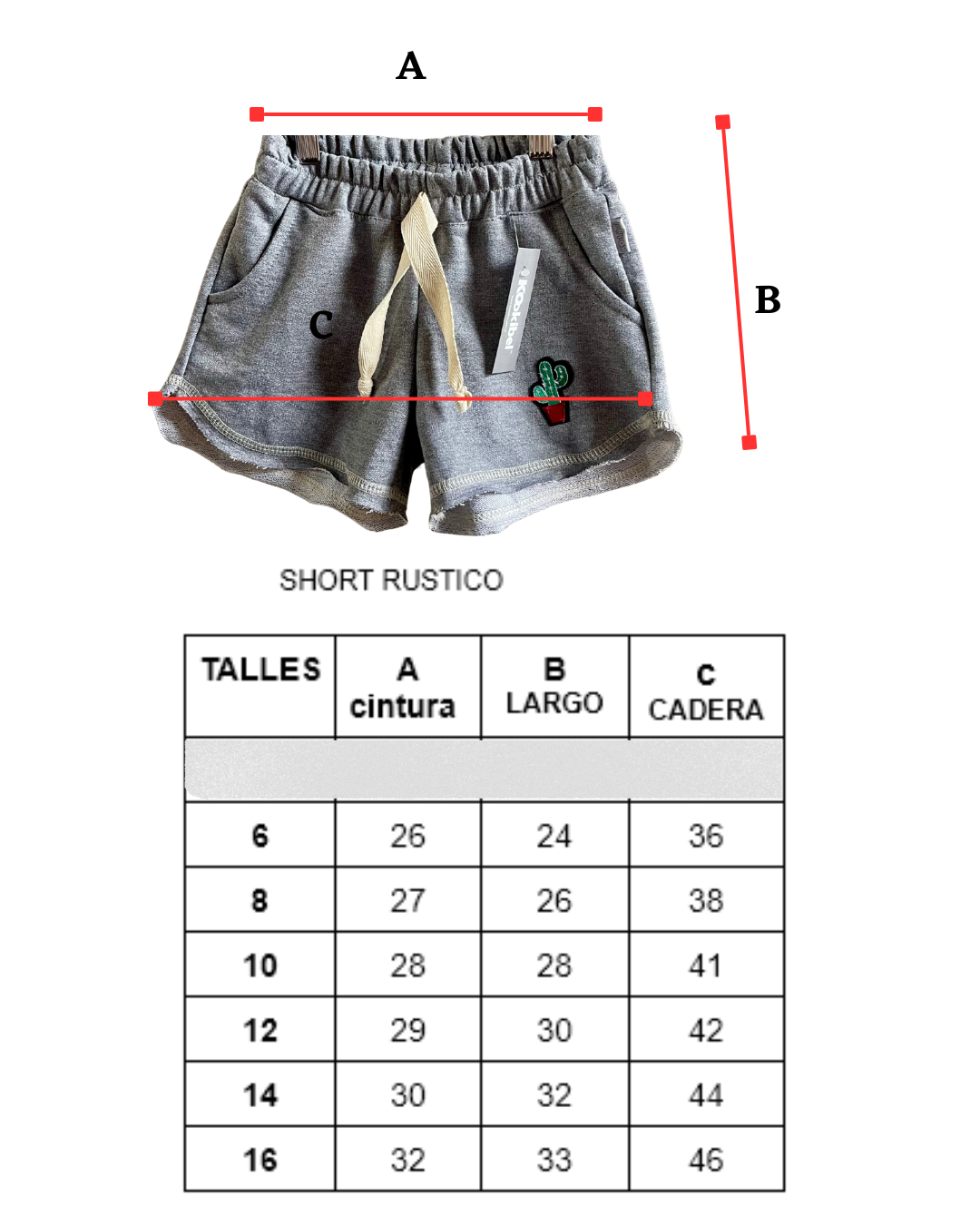 Disponible en talles del 6 al 16, este short es la opción perfecta para combinar con distintas prendas y disfrutar de jornadas llenas de juego y movimiento. No olvides revisar las medidas que dejamos al pie .
